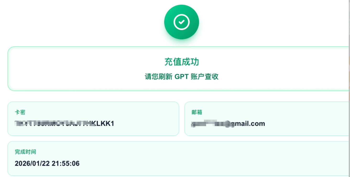 之后,就可以用卡密进行充值了