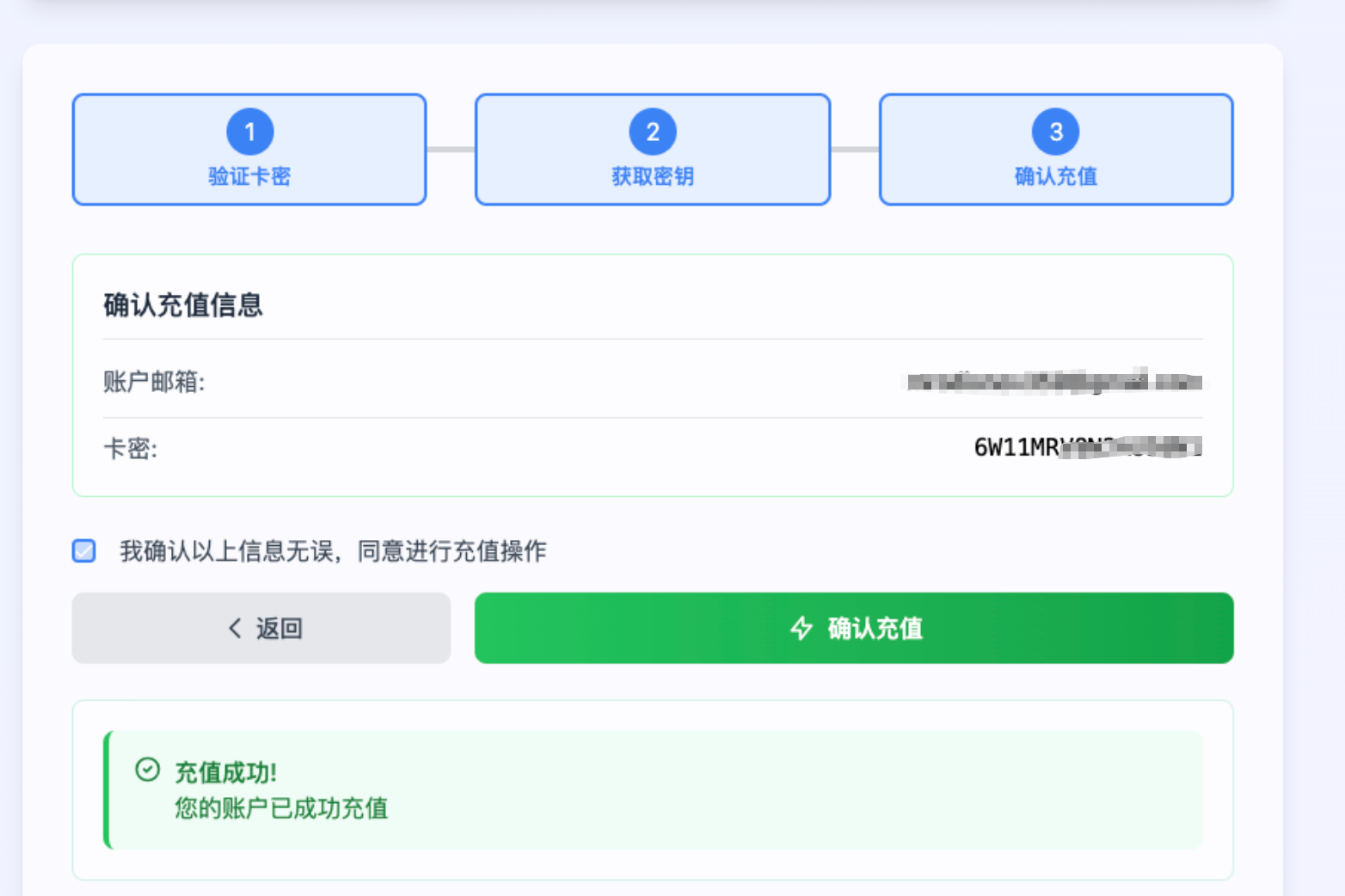 然后输入你刚才购买的卡密验证即可。